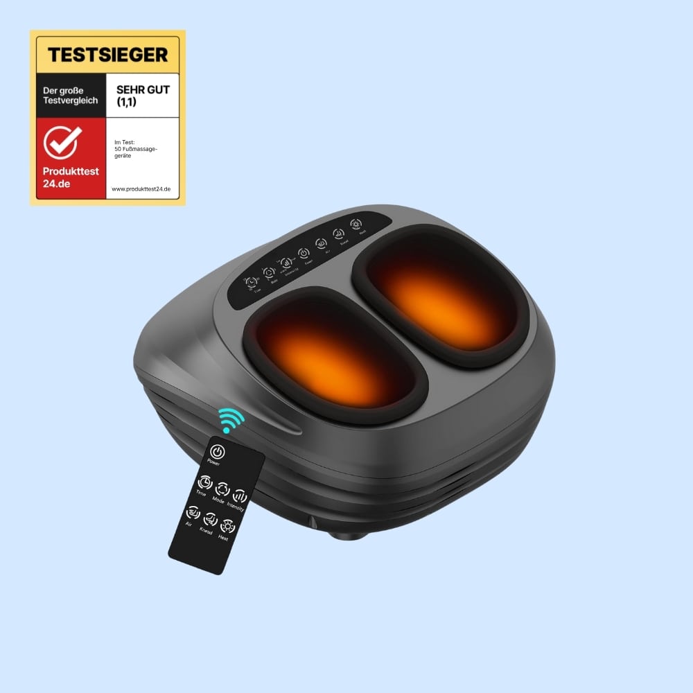 Der OrthoVelour Pro ist unser klarer Testsieger 2026: Er ist das einzige Fußmassagegerät im Test, bei dem professionelle Massagequalität, therapeutische Wirkung und Alltagstauglichkeit wirklich eins werden. Mit kraftvoller 6D-Massage, drei Intensitätsstufen und intelligenter Luftkompression kombiniert mit Wärmefunktion. Perfekt für alle, die nach einem langen Arbeitstag entspannen, Durchblutungsprobleme lindern und nie wieder schmerzende Füße ertragen wollen.