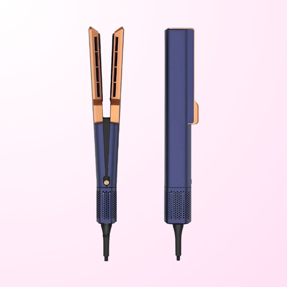 Der Dyson Airstrait selbst überzeugt mit fortschrittlicher Luftstrom-Technologie, die das Haar ganz ohne Heizplatten glättet. Statt direkter Hitze wird kontrolliert
